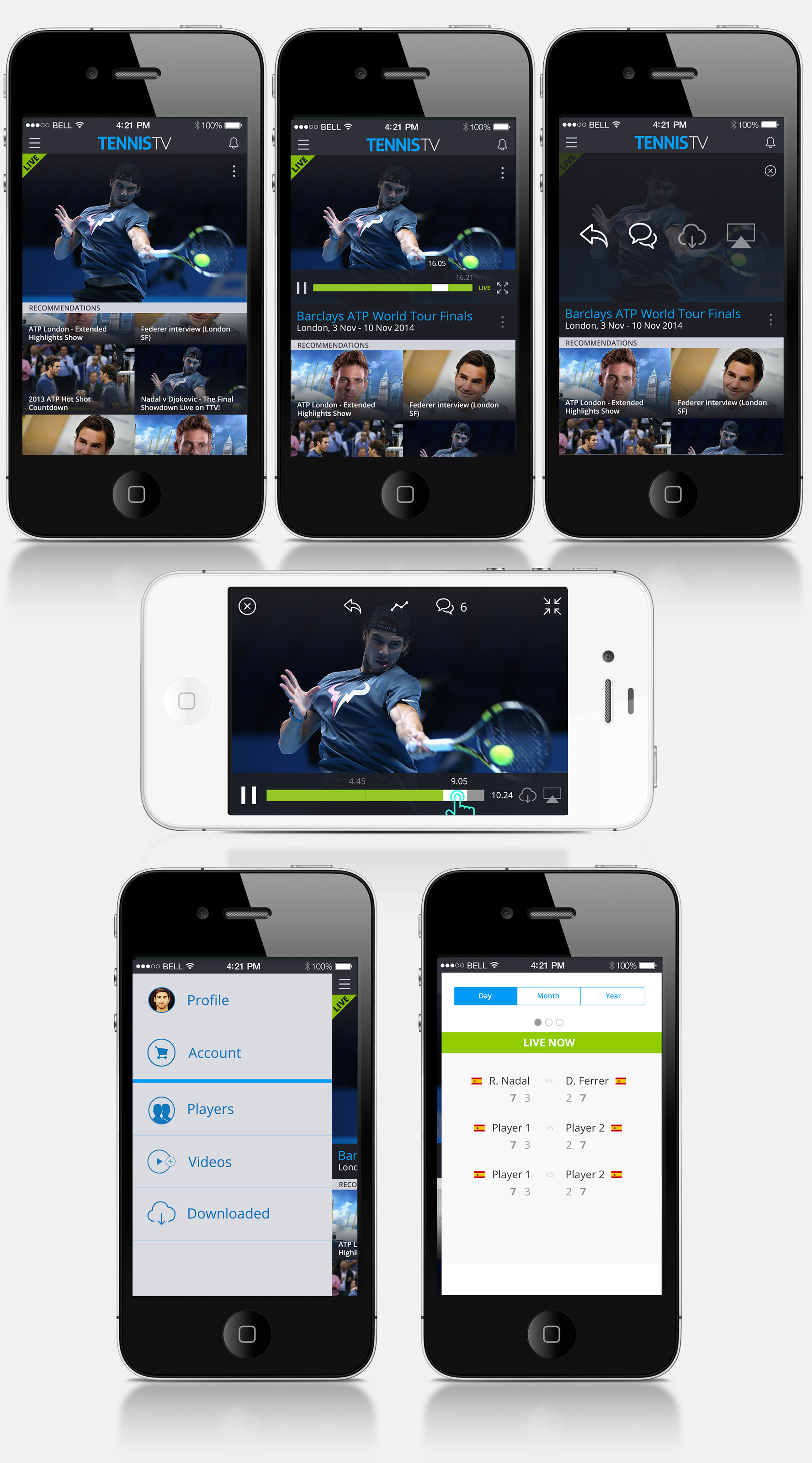 Design the initial screen and navigation for TennisTV's iPhone app.